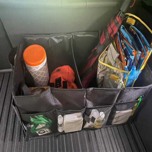 HOTOR Foldable Trunk Organizer - SUV, Sedan & Van Compatible, Sturdy Base Panel for Car Accessories