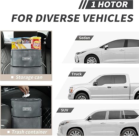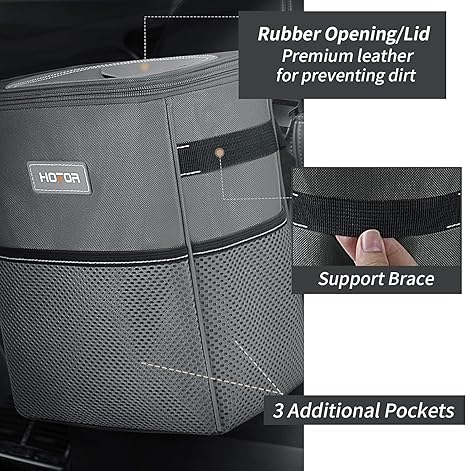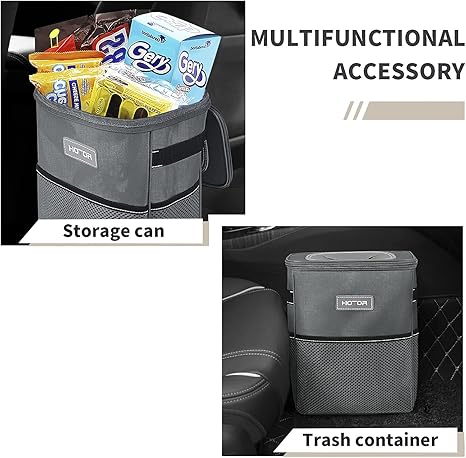 HOTOR Car Trash Can, Multifunctional Car Accessory for Interior Car Stuff Storage-Gray