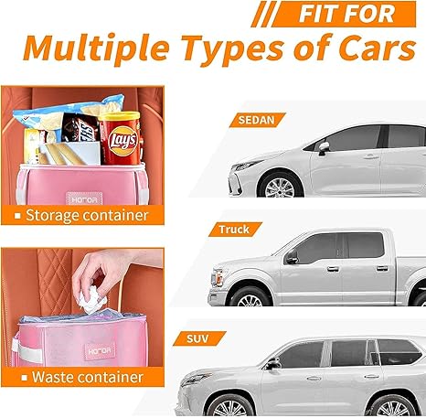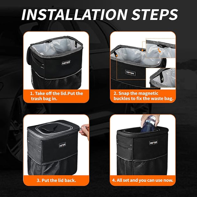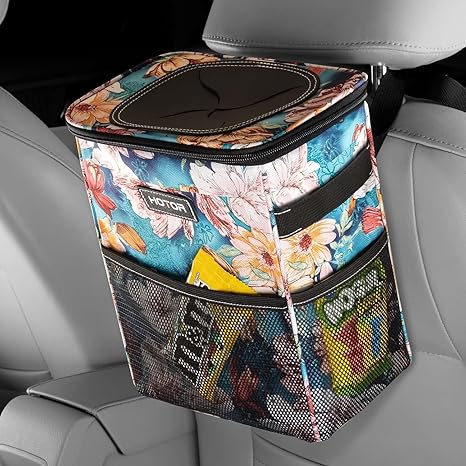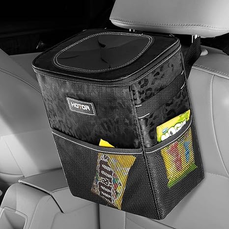 HOTOR Car Trash Can - Multifunctional Car Accessory for Interior Stuff-Black and Print