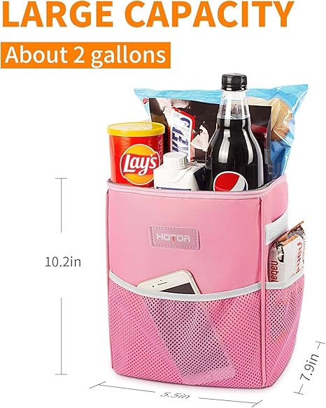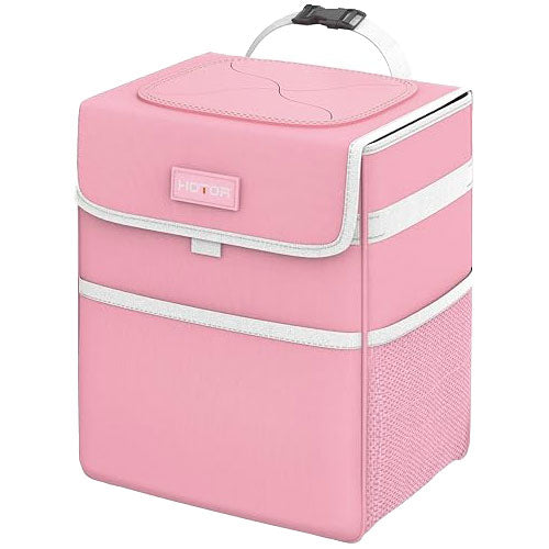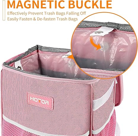 HOTOR Car Trash Can with Lid and Storage Pockets-Pink