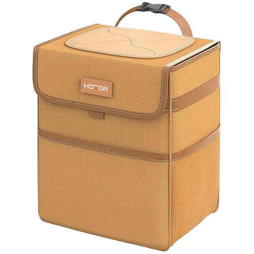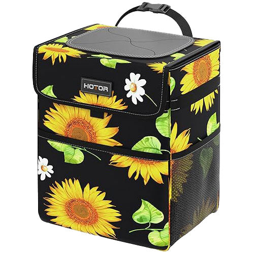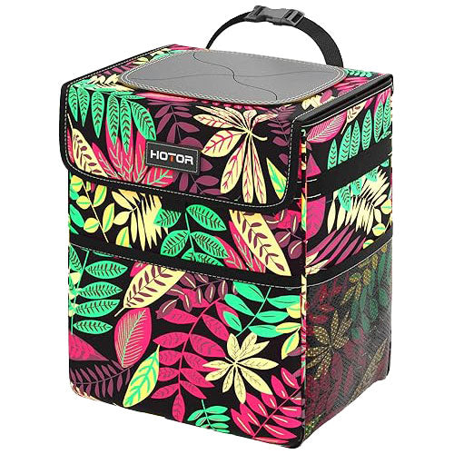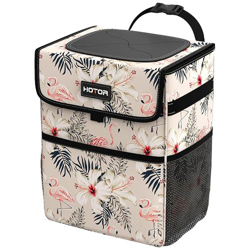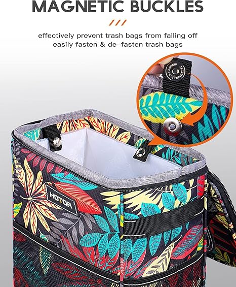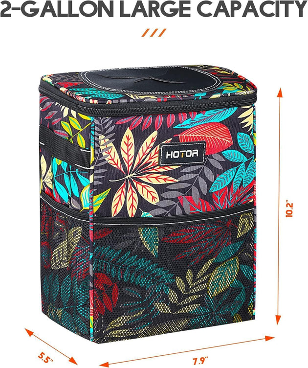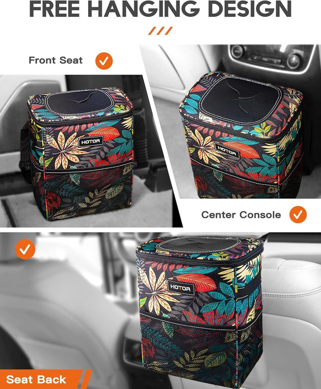 HOTOR Car Trash Can with Lid and Storage Pockets-Leaves