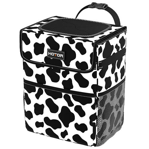 HOTOR Brown Car Trash Can with Adjustable Strap, Magnetic Snaps-Cow