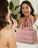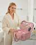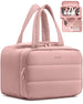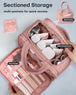 HOTOR Travel Size Toiletry Bag for Women, Wide-Open Makeup Bag with Handle, Multi-Pocket Cosmetic Organizer, Wet & Dry Separation, 11.4" x 5.9" x 8.3". Dark Pink