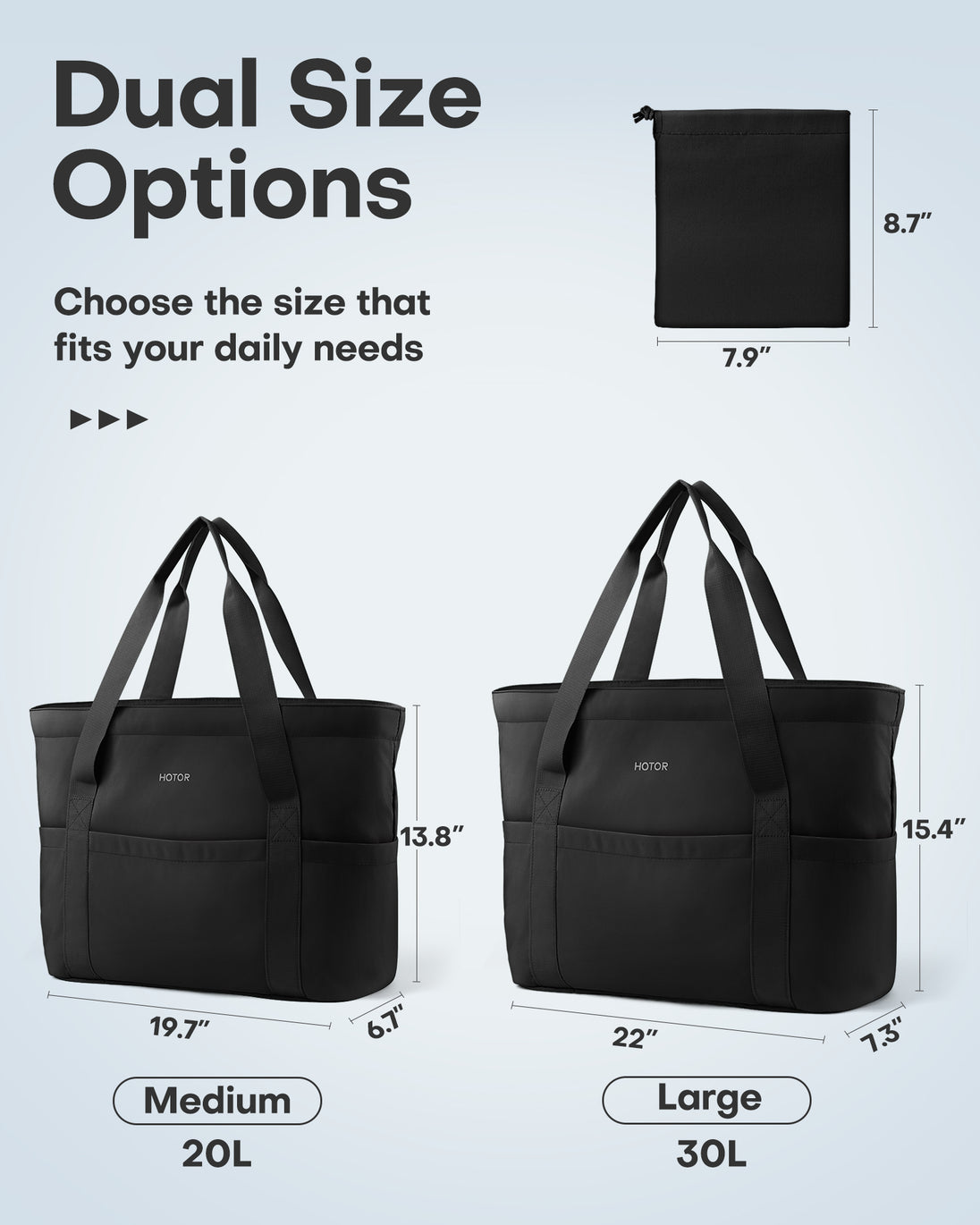 - FOLDABLE & COMPACT: This tote can be folded and stored in a 7.9" x 8.7" pouch, making it perfect for travel and easy storage without taking up extra space.