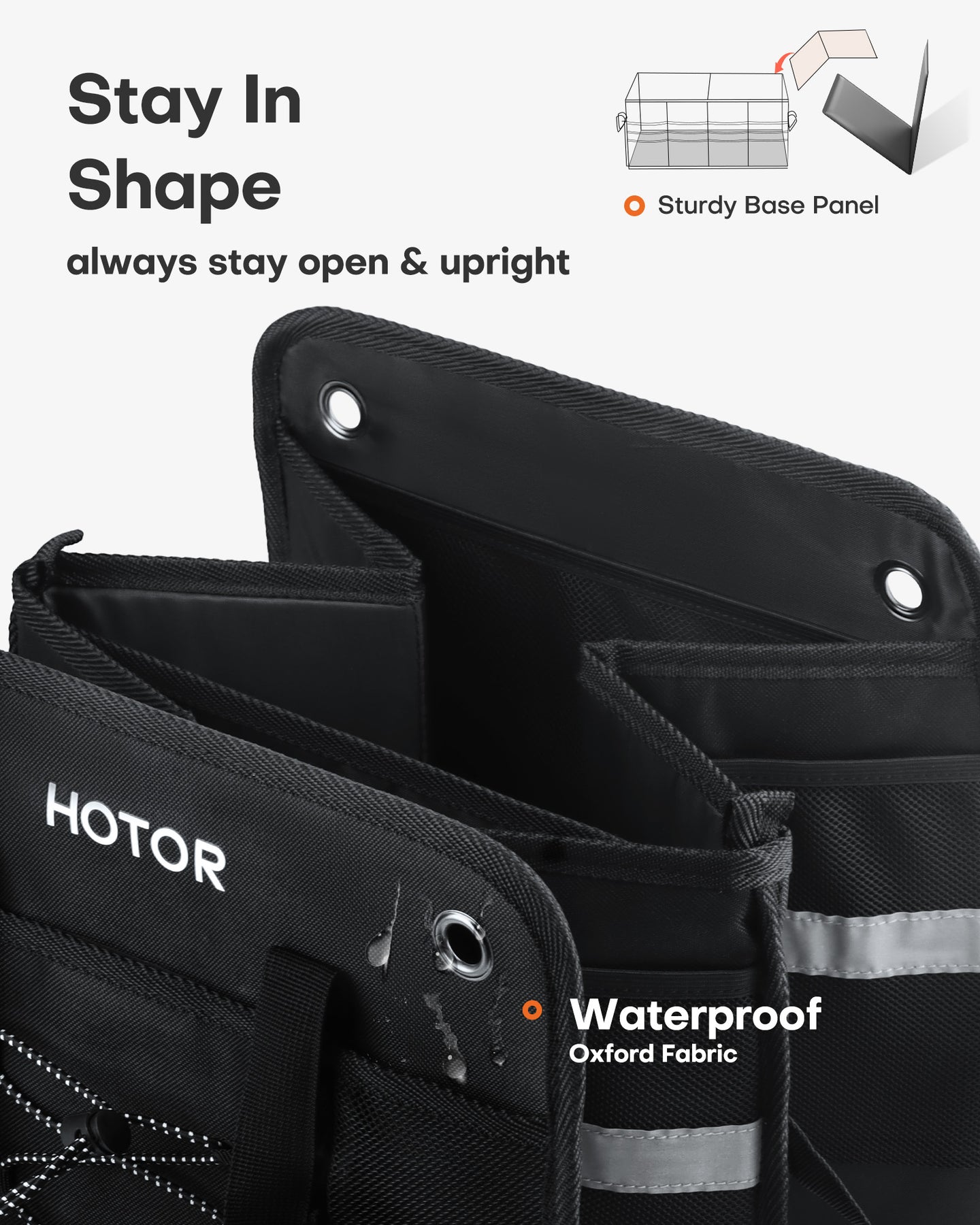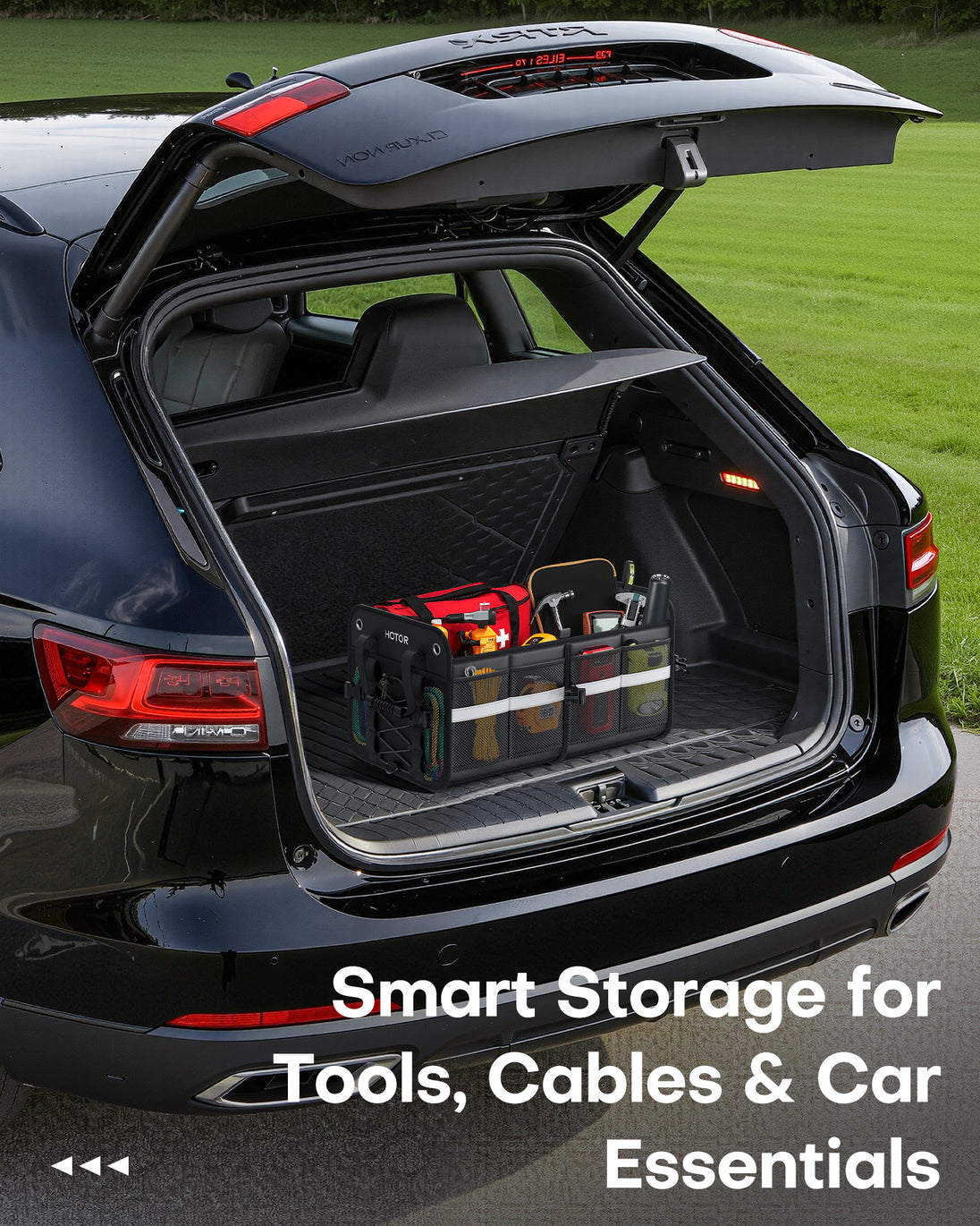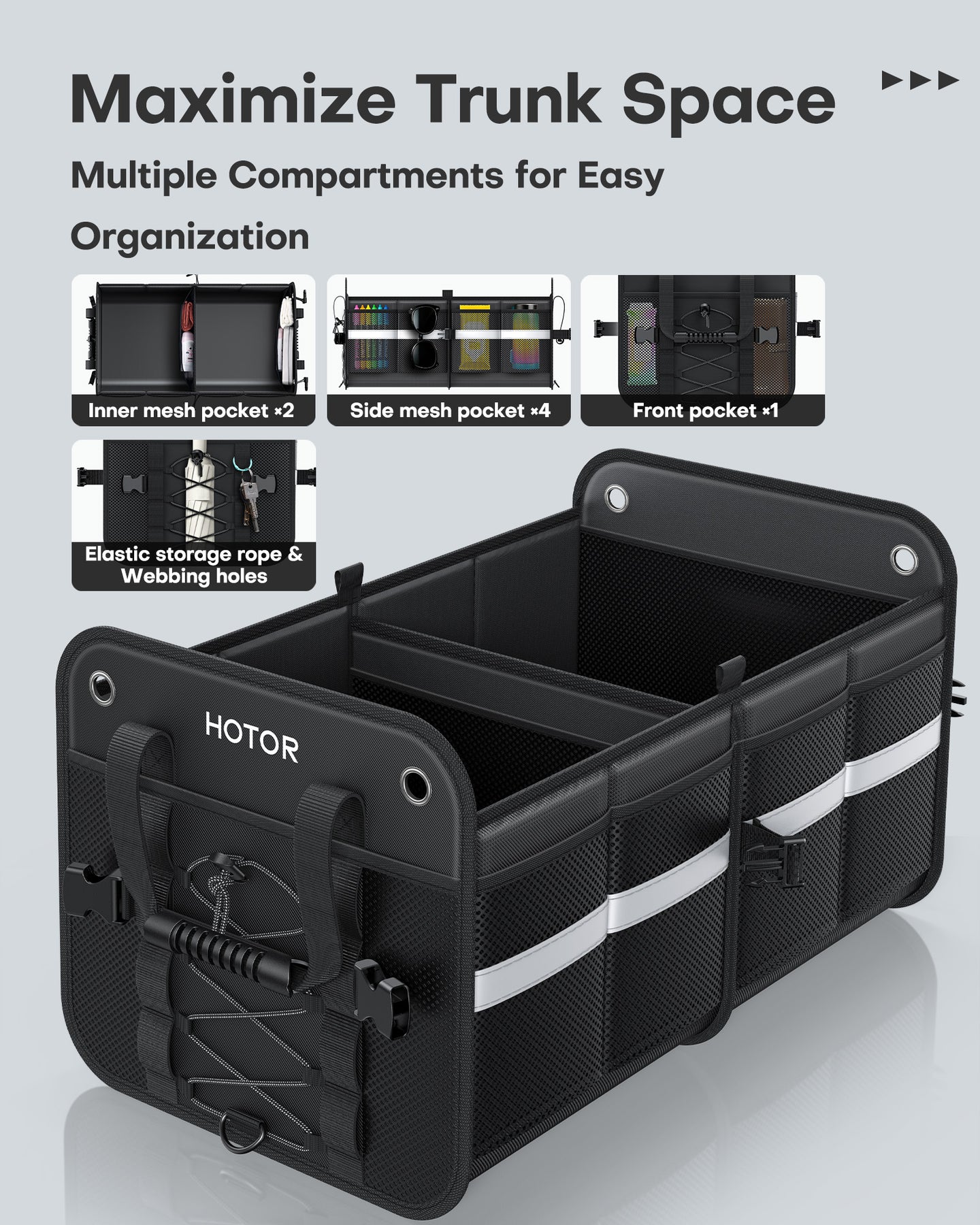 HOTOR SUV Trunk Organizer - Collapsible Heavy-Duty Car Storage Box with Reflective Strips for SUV, Truck, Van