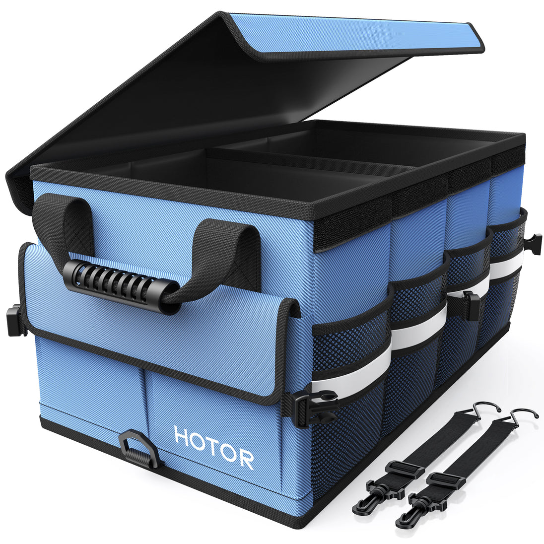 HOTOR Car Trunk Organizer - Foldable Trunk Organizer for SUV, Car Storage with Reflective Strips & Securing Cover, Large Capacity Car Accessories for Truck, Van & Sedan, Blue, 22.1" x 12.6" x 11.0"