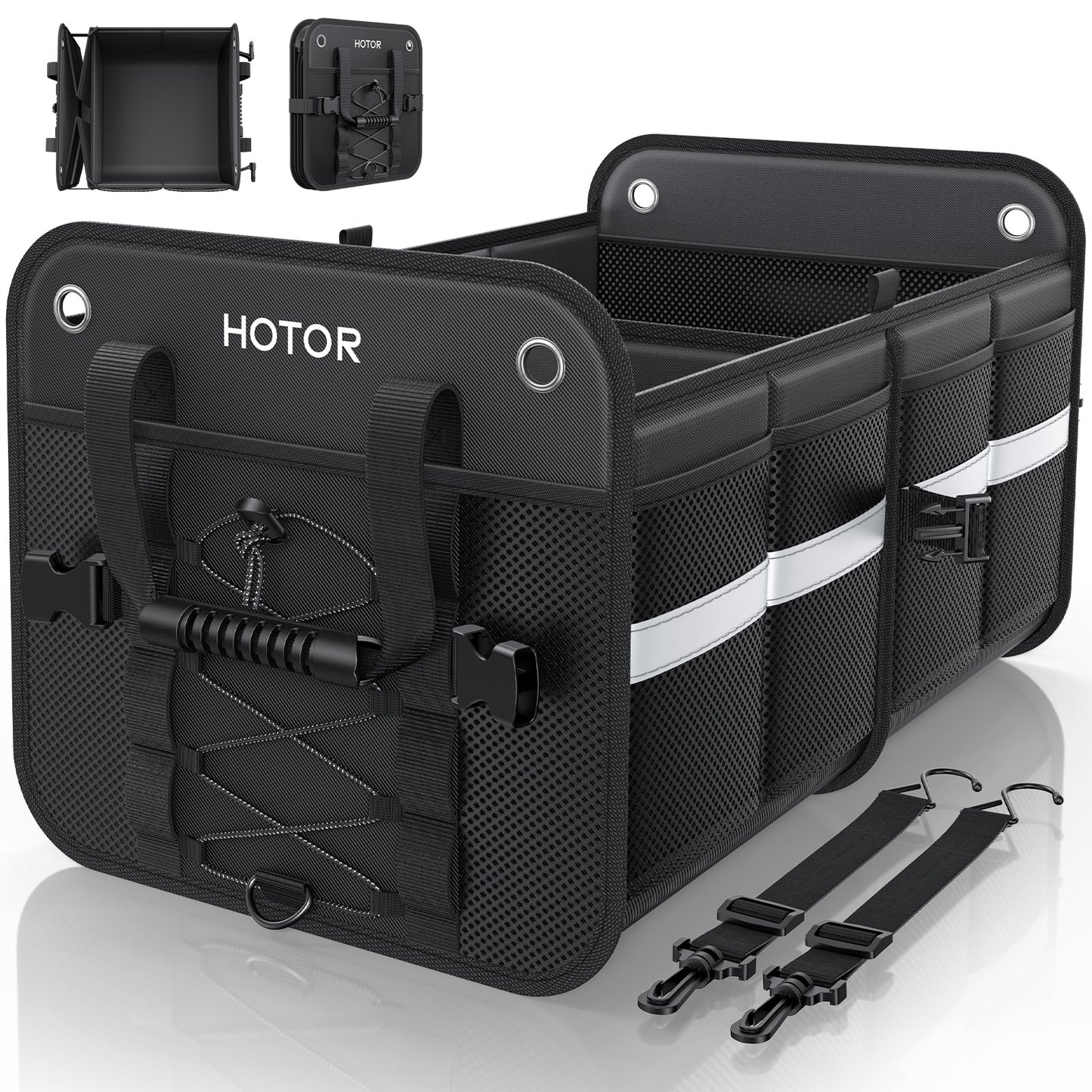 HOTOR Trunk Organizer for SUV – Car Storage Box with Reflective Strips, Collapsible Car Organizer with Large Capacity, Essential Car Accessories for Truck, Van & Sedan, Black, 22.1" x 13.0" x 12.0"